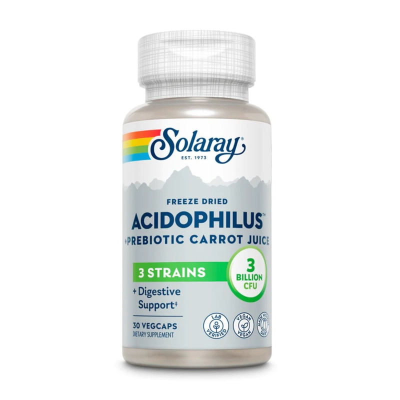 Ацидофіли, Пробіотик та пребіотик морквяного соку, Acidophilus 3 Strain Probiotic & Prebiotic Carrot Juice, Solaray, 30 вегетаріанських капсул