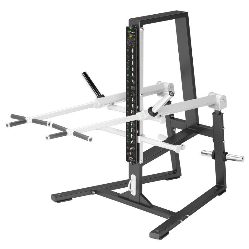 Надзвичайно функціональні важелі змінюють своє положення в будь-якому напрямку – вгору – вниз – вліво – вправо. Максимальне навантаження – 2×125 кг, мінімальне навантаження –2×8,4 кг. Квадратна форма важеля біля основи дає можливість точної його фіксації на опорі (точно попадає в паз і не злітає з тримача). Тренажер додатково оснащений дискотримачами (Ø 49 мм) та кронштейном для каната.