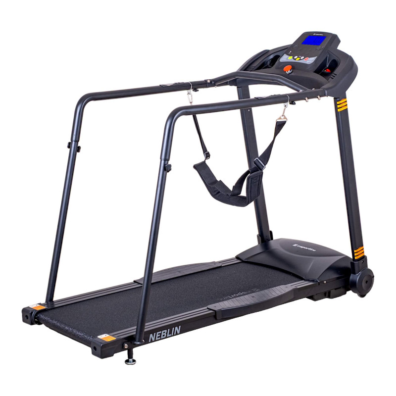 Бігова доріжка inSPORTline Neblin — це домашня бігова доріжка, призначена спеціально для реабілітації. Бічні поручні, виготовлені з м’якого матеріалу, допомагають під час ходьби по полотну бігової доріжки. Вони гарантують безпеку на кожному кроці та підтримку по всій довжині талії. Ви також знайдете інше горизонтальне поруччя прямо перед собою.