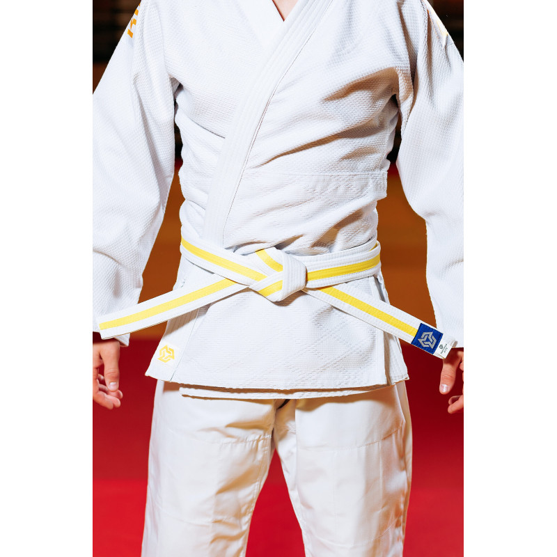 Біло-жовтий пояс для дзюдо Kintayo — це поєднання міцності, доступної ціни та впевненості у кожному тренуванні на старті спортивного шляху.