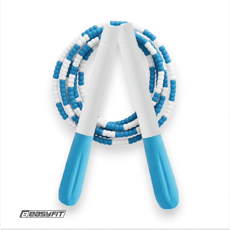 Бісерна скакалка EasyFit FreeRope, Довжина 2,7 м, Біло-блакитний, Для роуп-скіппінгу, фристайлу та функціональних тренувань