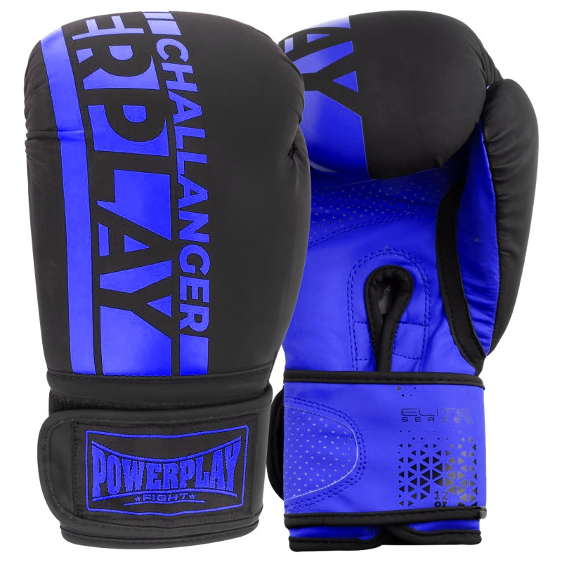 Боксерські рукавиці PowerPlay 3086 Matt Challenger Чорно-Сині 14 унцій