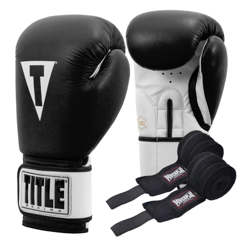 Боксерські рукавиці TITLE Premier Leather Black/White M 12 oz (бинти 4м. в комплекті)
