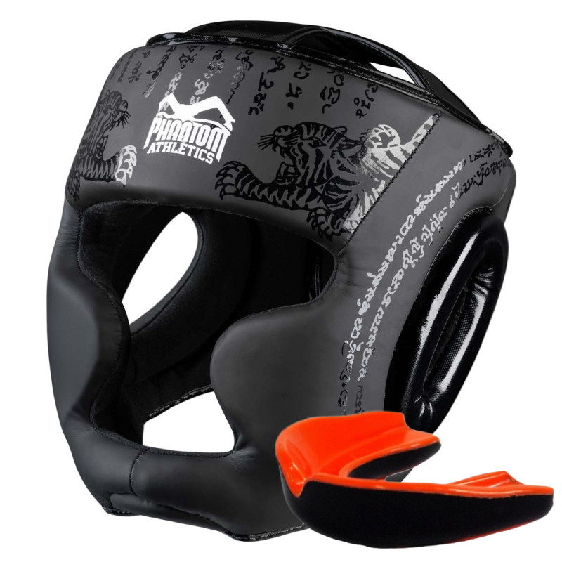Захист голови Phantom Muay Thai забезпечує повний захист під час тренувань, спарингів і змагань. Ви можете покластися на високу якість виконання не тільки в тайському боксі, але і в кікбоксингу або ММА. На додаток до товстої набивки на лобі, захист голови Muay Thai має набивку на підборідді та високій ніжці. Вуха також захищені додатковою підкладкою.