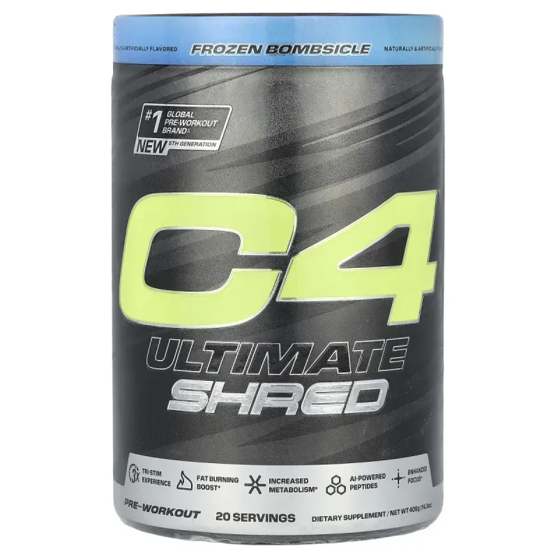 C4 ultimate® Shred забезпечує бадьорість у найактивніші моменти фізичної працездатності та сприяє спалюванню жиру.