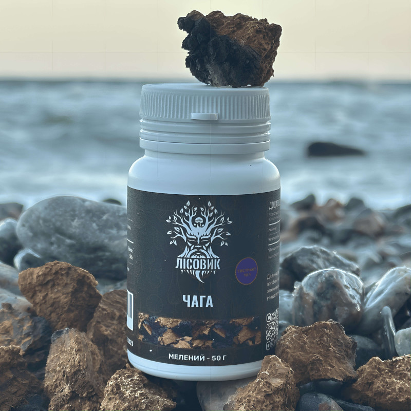 Чага березова, екстракт 10:1, мелений, "Лісовик", 50 грам — це натуральна добавка з березового гриба-трутовика, який зазвичай росте на старих березах у лісах північних регіонів. Цей гриб любить прохолодну вологу, часто ховається на стовбурах дерев, накопичуючи в собі силу природи і життєву енергію лісу. Відомо, що Чага використовується людьми вже багато століть — шамани північних народів вважали її джерелом життєвої сили, а народна медицина застосовувала для підтримки травлення, імунітету та загального зміцнення організму. Екстракт Чаги “Лісовик” концентрує в собі найцінніші компоненти гриба, роблячи їх легше засвоюваними та допомагаючи організму відновлюватися, набиратися сил і підтримувати гармонію душі та тіла.