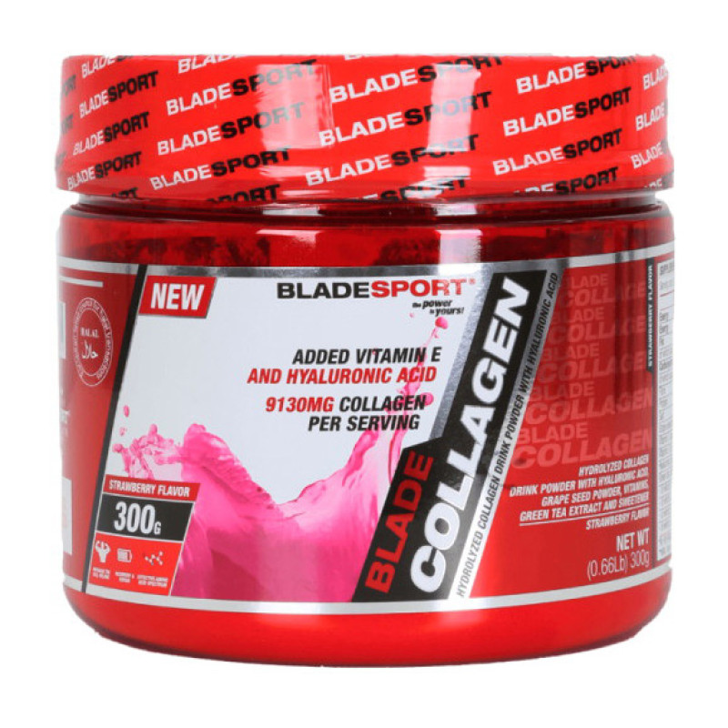 Blade Collagen – это добавка на основе гидролизованного коллагена, обогащенный гиалуроновой кислотой, витаминами и экстрактами растений, разработанный для поддержки нормального функционирования кровеносных сосудов, костей, хрящей, десен, кожи и зубов. Основным компонентом добавки является коллаген – наиболее распространенный белок в организме человека, содержащий 18 различных аминокислот, среди которых пролин и глицин преобладают. В каждой порции содержится около 9 г коллагена. Витамин С в составе способствует нормальному формированию коллагена, что важно для здоровья и функционирования многих систем тела. Кроме того, Добавка Blade Collagen содержит гиалуроновую кислоту и витамин Е, которые известны своими антиоксидантными и увлажняющими свойствами, а также способствуют улучшению состояния кожи. Экстракт виноградной косточки и зеленого чая добавляют дополнительные антиоксиданты, защищающие клетки от повреждений свободными радикалами и поддерживающие общее здоровье. Применение добавки Collagen рекомендуется для: улучшения состояния кожи, волос и ногтей; поддержания здоровья костей и суставов; общего антиоксидантного защита. Коллагеновая добавка Collagen подходит для ежедневного употребления как часть общего плана по уходу за здоровьем и красотой. Как принимать добавку Смешайте одну порцию (1 мерная ложка - 10 г) с 200 мл холодной воды. Вкус Black Cherry Пищевая ценность в одной порции (10 г) Гидролизованный коллаген 8,85 г Порошок виноградных косточек 150 мг Витамин С (L-аскорбиновая кислота) 100 мг Витамин Е (DL-альфа токоферил ацетат) 5 мг Гиалуроновая кислота (гиалуронат натрия) 80 мг Экстракт зеленого чая 50 мг Состав Гидролизованный коллаген, кислота (лимонная кислота), краситель (концентрат свеклы), порошок виноградных косточек, витамины [витамин С (L-аскорбиновая кислота), витамин Е (DL-альфа токоферил ацетат)], гиалуроновая кислота (гиалуронат натрия), экстракт листьев зеленого чая (Camellia sinensis), подсластитель (сукралоза). Фасовки 300 г - 30 порций.