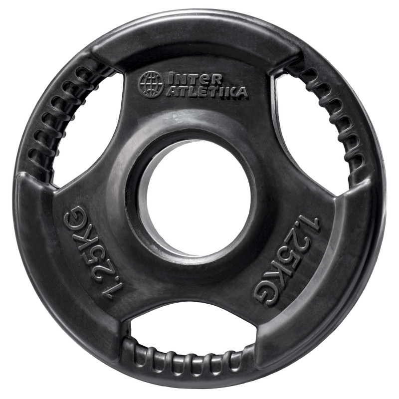 Диск InterAtletika LCAH-M гумовий з ручками призначений для зміни ваги штанги або гантелі. Використовується в поєднанні з цими снарядами, також можна застосовувати як обтяжувач замість гантелі. Щоб диск не сковзнув грифа під час тренування, рекомендується надійно його фіксувати. Диск має ручки для зручнішого перенесення та одягання їх на штангу або гантель. Завдяки обрізаному верхньому шару, диск не зіпсує покриття для підлоги, тренажери або стіну при падінні.
