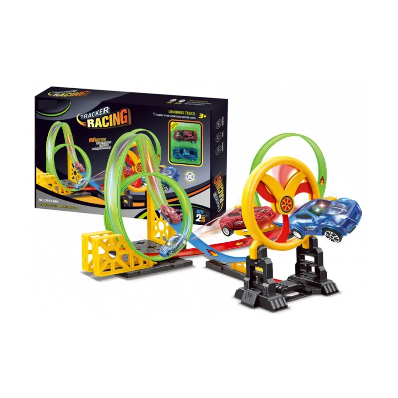 Траса траси дійсно змагальна і подарує неабиякі емоції. Пройшовши цілих 3 цикли, машини розвернуться на 360 градусів , з'їдуть з рампи на повній швидкості і прострибнуть між вентилятором, що обертається . Щоб вражаюча поїздка була успішною, іграшковий автомобіль повинен поміститися між лопатями рухомого обода . Це не завжди вийде, але варто попрактикуватися. Додатковий ефект забезпечує світлодіодне підсвічування гоночних автомобілів.