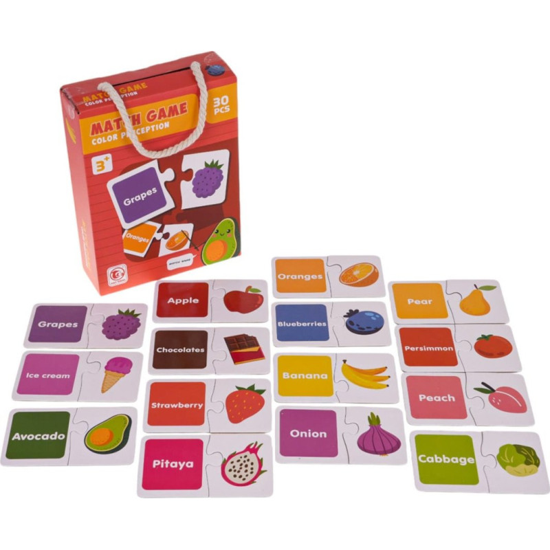 Навчальна гра Learn English — ідеальний спосіб познайомити дітей від 3 років зі світом англійської мови. Набір складається з 30 пазлів, які допомагають дітям вивчати англійські назви фруктів і розрізняти кольори.