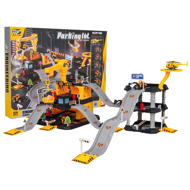 Багатофункціональний паркінг — це набір для дітей від трьох років, створений для любителів транспортних засобів і тематичних ігор. Він складається з 84 елементів, які після складання утворюють реалістичне будівельне середовище з численними атракціонами. Набір поєднує в собі три рівні паркінгу з майданчиком для вертольотів та трирівневий будівельний майданчик з рухомим краном, заправкою та гірками. Це ідеальне поєднання творчої гри з рольовими іграми, натхненними повсякденною роботою будівельних машин.