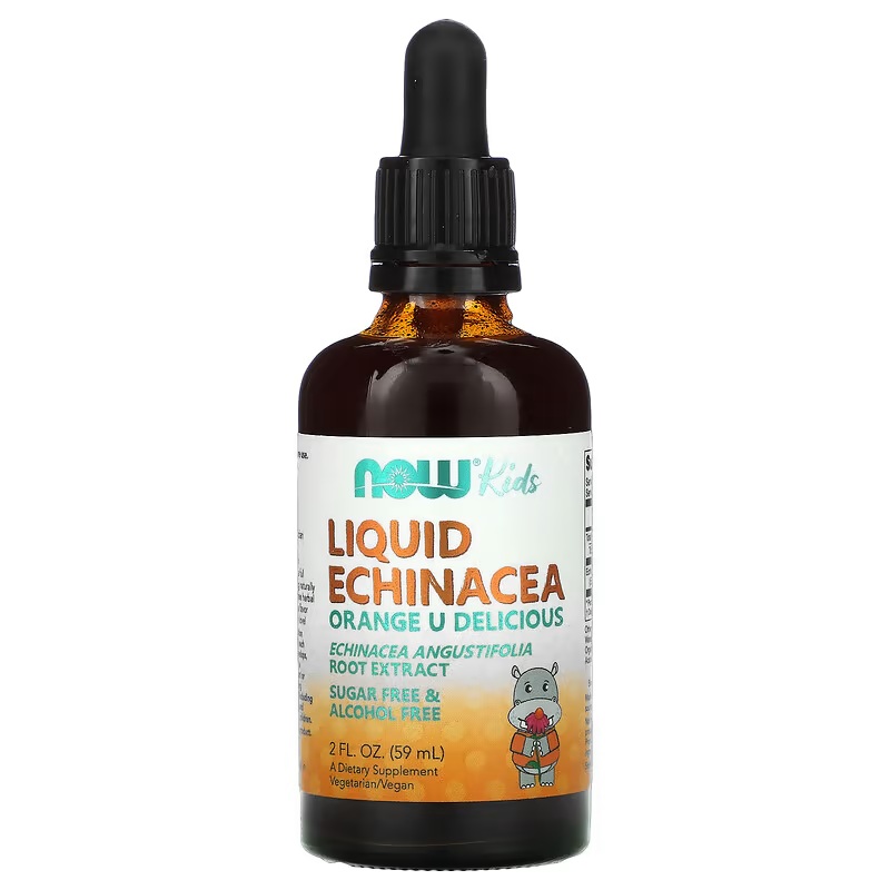 Ехінацея для дітей у краплях, смак апельсина, Kids, Liquid Echinacea, Now Foods, 59 мл