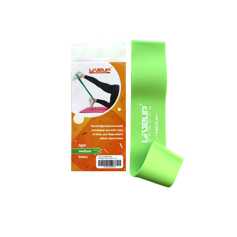 Еспандер-петля LiveUp LATEX LOOP використовується для фітнес-тренувань, при заняттях пілатесом і йогою. За допомогою такого простого тренажера можна урізноманітнити багато вправ, збільшивши навантаження, при цьому не викликаючи звикання м'язів.