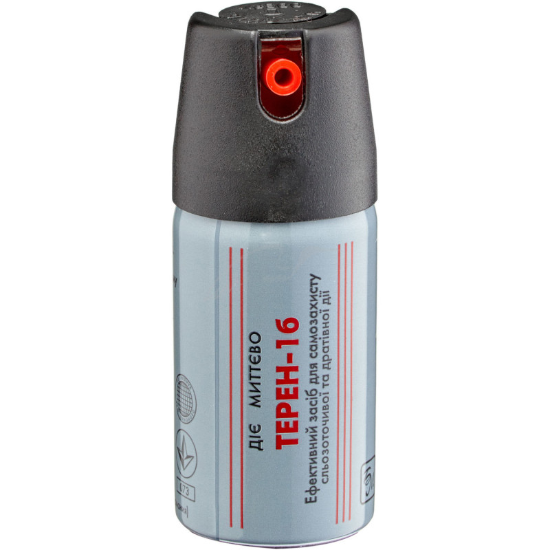 Вироби "Терен-1Б" (ТУ У 29.6-19485052-019-2002 призначені для використання цивільними особами в якості засобу самозахисту і являють собою балони аерозольного типу, заповнені препаратом, що містить речовина речовина сльозоточивої та дратівної дії (ірритант) - морфолид пеларгоновой кислоти. Препарат чинить вплив "конусом" аерозольного хмари, він ефективний при застосуванні як проти осіб, які перебувають у стані алкогольного сп'яніння, так і проти собак. Вироби є однофункціональними, невідновлювальними і неремонтованими. Застосовуваний склад не руйнує озоновий шар. Виріб сертифікований.
