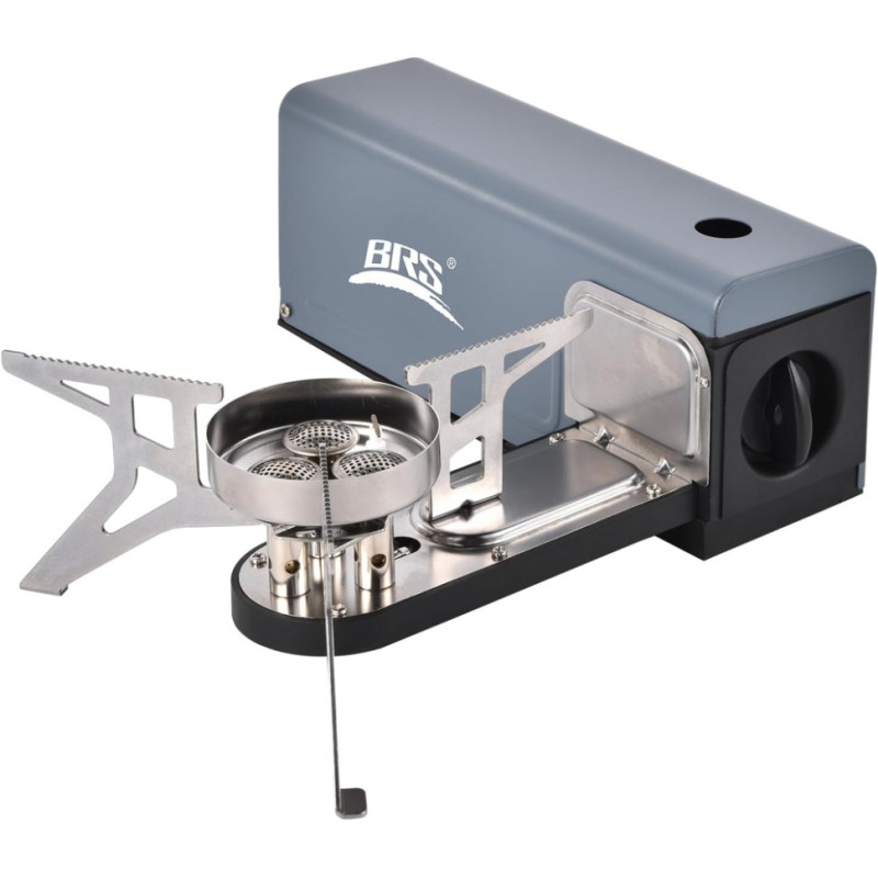 Пальник BRS-97 активується методом п'єзозапалювання та має вбудований вітрозахист, щоб сильні пориви вітру не гасили полум'я. Складані зубчасті підставки дозволяють встановлювати на конструкцію похідний посуд діаметром від 100 до 260 мм.