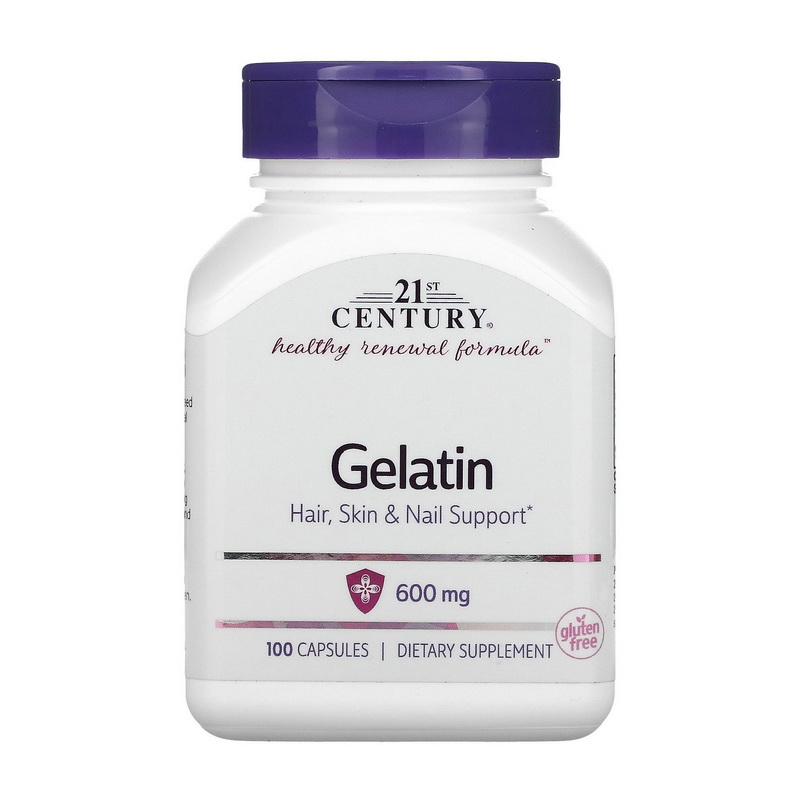 Gelatin 600 mg от 21st Century – фармацевтический желатин самого высокого качества. Желатин поддерживает здоровье волос, кожи, ногтей и хрящевой ткани.