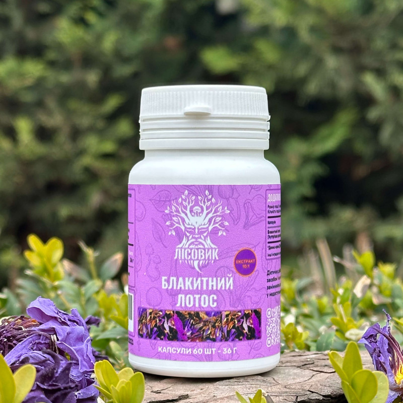 Блакитний лотос по 0.6 г "Лісовик", екстракт 10:1, 60 капсул — сакральна водна рослина, що зростає у тропічних регіонах Африки та Азії і здавна цінувалася в давньоєгипетській культурі як символ гармонії, спокою та духовного пробудження. Його використовували у вигляді настоїв, ароматичних сумішей і косметичних засобів для підтримки емоційного балансу та розслаблення. Сучасний екстракт 10:1 від Лісовик забезпечує підвищену концентрацію активних речовин, що робить продукт зручним та ефективним для щоденного використання.