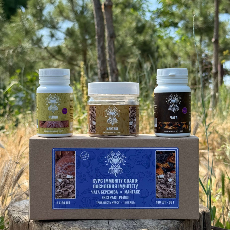 Курс Immunity Guard створений для комплексної підтримки імунної системи у періоди підвищеного навантаження на організм. Сучасний ритм життя, стрес, нестача відпочинку та вплив зовнішніх факторів поступово послаблюють природні захисні механізми. Саме тому у цьому курсі об’єднано три добре відомі функціональні гриби — рейші, майтаке та чагу. Кожен із них має власні корисні властивості, а разом вони формують збалансований комплекс для підтримки імунітету, енергії та загального самопочуття. Такий курс допомагає організму краще адаптуватися до щоденних навантажень та підтримувати природний баланс.