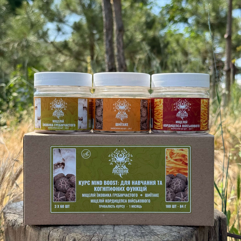 Mind Boost v2 — це комплексний курс натуральних грибів, створений для підтримки пам’яті, концентрації та ясності мислення. У сучасному ритмі життя мозок часто перевантажений інформацією, дедлайнами та постійними задачами. Через це знижується увага, з’являється розсіяність і втома, навіть після повноцінного відпочинку. Саме тому курс Mind Boost поєднує три добре відомі функціональні гриби — їжовик гребінчастий, шиїтаке та кордицепс мілітаріс. Кожен із них має власну дію, а разом вони формують збалансовану формулу для підтримки когнітивних функцій, стійкості до стресу та продуктивної розумової роботи.