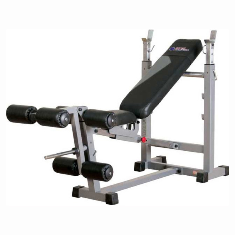 Лава для жиму універсальна з регульованими по висоті стійками і приставками призначена для вправ зі штангою, а також для вправ на ноги.
