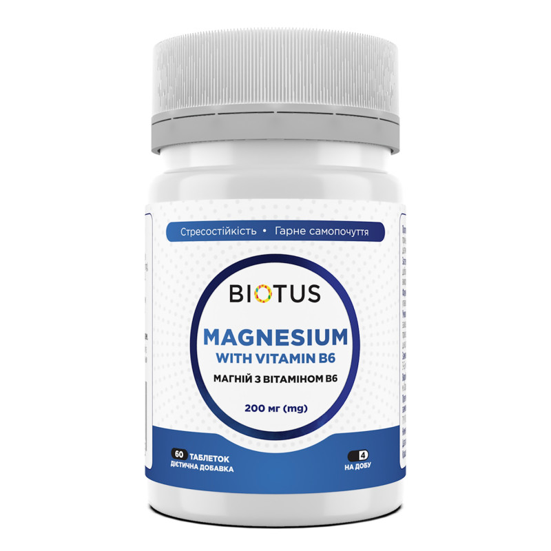 Магній з вітаміном В6, Magnesium with Vitamin B6, Biotus, 60 таблеток