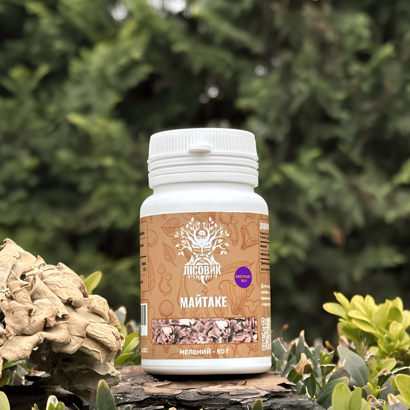 Гриб Майтаке, екстракт 10:1, мелений, "Лісовик", 50 грам — цінний лікарський гриб, що природно росте біля основи дерев у лісах Японії, Китаю та Північної Америки. У традиційній східній медицині його століттями використовували для підтримки ослабленого організму, відновлення сил і довголіття. Сучасні дослідження звернули увагу на високий вміст бета-глюканів і біологічно активних полісахаридів, які визначають функціональні властивості гриба. Екстракт 10:1 забезпечує підвищену концентрацію активних компонентів, що сприяє кращому засвоєнню та більш вираженому підтримувальному ефекту.