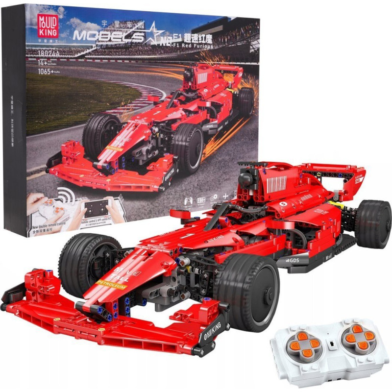 Якісні конструктори для дітей від чотирнадцяти років. Набір складається з 1065 елементів, з яких можна побудувати дистанційно керований гоночний болід Формули-1. Транспортний засіб рухається в усіх напрямках вперед, назад, праворуч і ліворуч. Керувати ним можна за допомогою пульта дистанційного керування, що входить в комплект, або за допомогою програми на телефоні. Додаток можна завантажити, відсканувавши QR-код на упаковці. Завдяки додатку можна не тільки переміщати транспортний засіб, а й проектувати його рухи. Він має гумові шини, які забезпечують хороше зчеплення з землею. Автомобіль живиться від батарейки 7.4V (входить в комплект), пульт живиться від батарейок 2 x AAA 1.5V (не входять).
