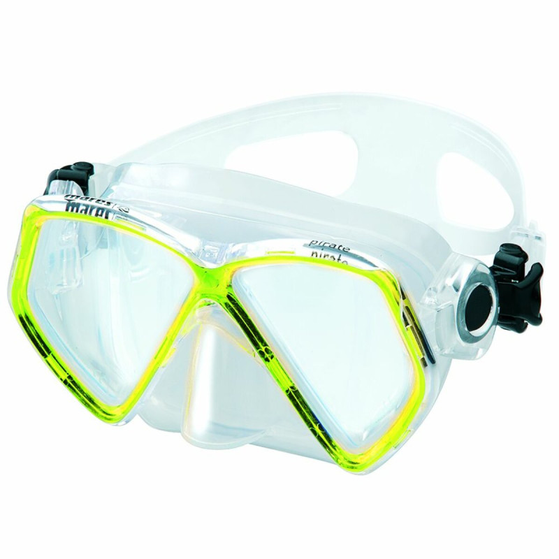Маска Mares Pirate Jr дитяча версія знаменитої маски Х-Vision з регульованими застібками на обтюраторі та відмінним кутом огляду. Вона має міцне та ударостійке загартоване скло. Застібка дозволяє швидко та легко відрегулювати розмір. Ремінець має роздвоєну форму, зручно охоплює голову та надійно утримує маску у правильному положенні.