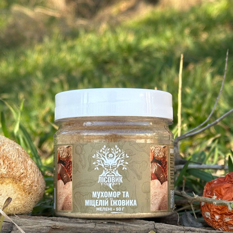 Мікс міцелію Їжовика гребінчастого з червоним мухомором у меленій формі — це поєднання сили лісу та сучасного підходу до мікродозингу, яке допомагає підтримувати ясність розуму, внутрішній баланс і природну стійкість організму.