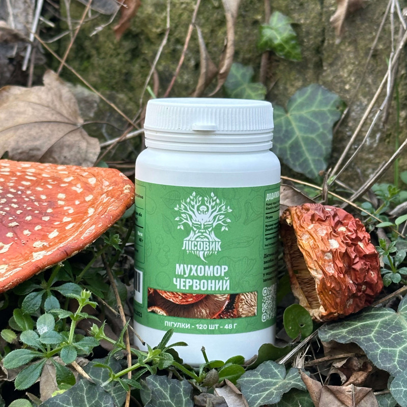 Мухомор червоний, "Лісовик", 120 таблеток по 0,4 г — один із найвідоміших грибів світу з багатовіковою історією використання в різних культурах. Його застосовували у традиційних практиках Північної Європи та Азії для підтримки витривалості, концентрації та психоемоційного балансу. Сучасні дослідження підтверджують наявність у плодових тілах біологічно активних сполук, що впливають на нервову систему. Формат таблеток по 0,4 г — це зручний і контрольований спосіб мікродозингу без необхідності самостійного зважування.