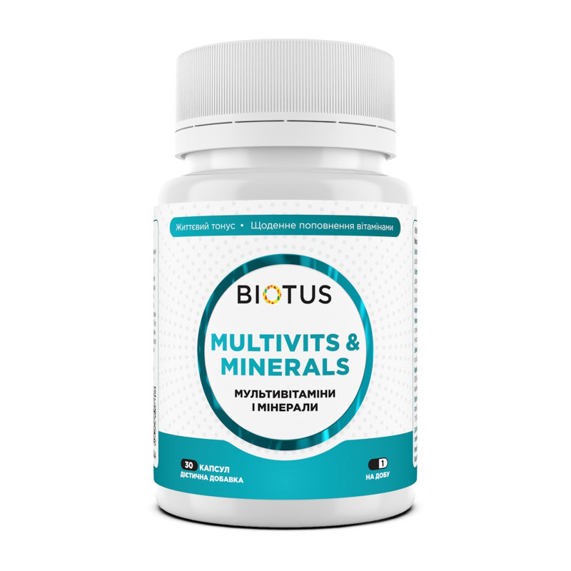 Мультивітаміни та мінерали, Multivits & Minerals, Biotus, 30 капсул