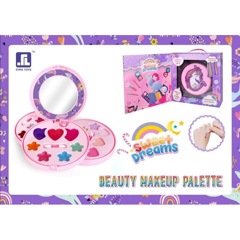 Косметика абсолютно безпечна для дитячої шкіри і легко змивається , що забезпечує комфорт і безпеку під час гри. Барвиста коробка-єдиноріг , що розгортається, відкриває багатий набір косметики, надихає на творчі експерименти з макіяжем і розвиває почуття естетики.