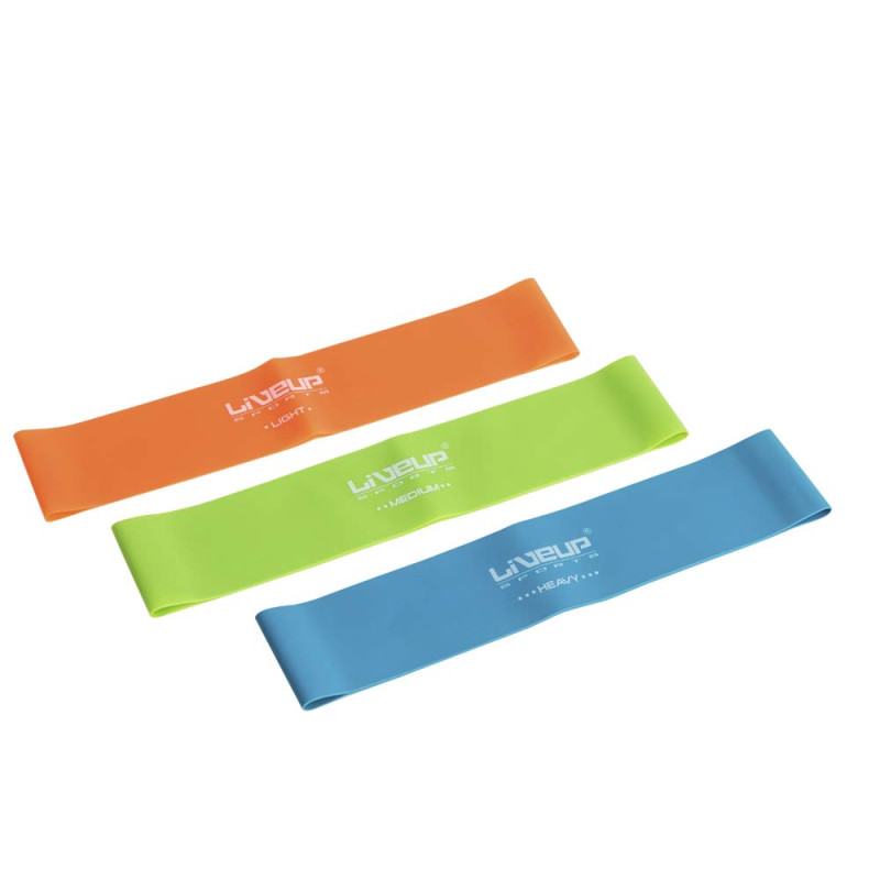 Набір фітнес гумок LiveUp LATEX LOOP SET — включає кілька еспандерів-петель різного рівня опору, що використовуються для фітнес-тренувань, пілатесу та йоги. Вони допомагають урізноманітнити вправи та збільшити навантаження без звикання м'язів.