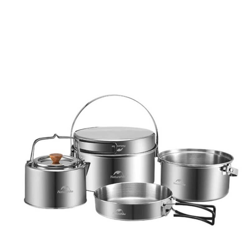 Набір посуду (каструля, казанок, сковорідка,чайник) Naturehike NH22CJ005, нержавіюча сталь