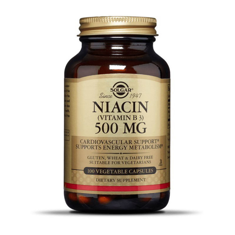 Niacin 100 mg компании Solgar – источника витамина В3. Витамин В3 (ниацин) – это водорастворимый витамин, который является частью комплекса B. Он необходим для нормальной биотрансформации углеводов и белков в энергию. Ниацин также поддерживает здоровое состояние сердечно-сосудистой системы, улучшает кровоток и поддерживает здоровье нервной системы.