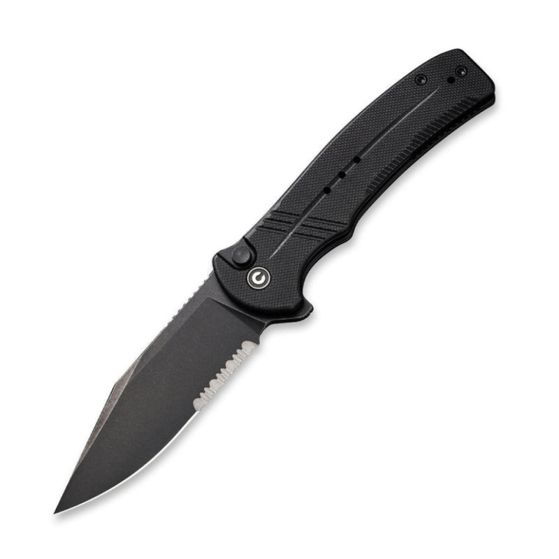 Головна особливість ножа — комбіноване заточування. Зона з прямим лезом ідеальна для рівних надрізів, а зубчаста кромка полегшує роботу з мотузками, деревиною та іншими волокнистими матеріалами. Гострий кінчик підвищує функціональність, що дозволяє працювати інструментом на укол.