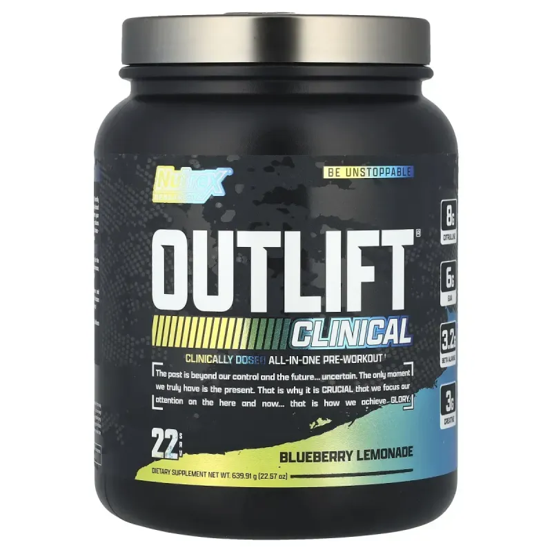 Outlift Clinical — це найкраща універсальна формула перед тренуванням. Він буквально звільняє від здогадок під час підготовки до тренування. Завдяки повному спектру клінічно дозованих інгредієнтів цей продукт не просто дає вам енергії. Outlift допомагає м’язам краще накачуватися, підвищує силу, підвищує витривалість, зменшує втому та підтримує відновлення та відновлення м’язів. Достатньо лише однієї мірної ложки, і ви миттєво відчуєте переваги під час тренувань.