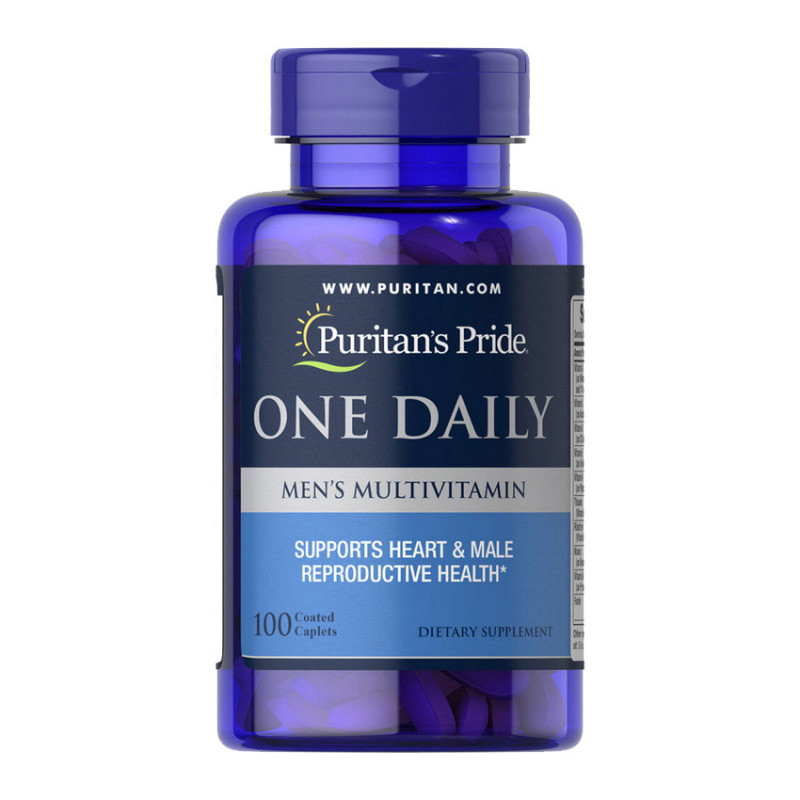 Puritan's Pride One Daily Men's Multivitamin – мульвитаминная добавка для активных мужчин и профессиональных спортсменов, восполняющая недостатки рациона и защищающая организм от негативных последствий интенсивного тренировочного процесса. В ее основе уникальная комбинация витаминов, минералов, антиоксидантов и растительных нутриентов, повышающих жизненный тонус и энергетический потенциал.