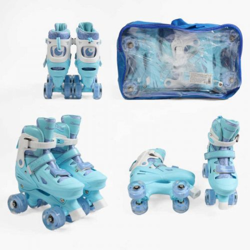 Комплектація: Ролики, переносна сумка, шлем, наколінники та налокітники