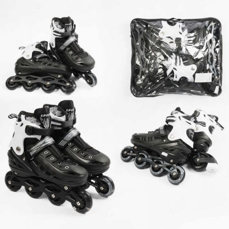 Ролики /розмір 39-43/ колір – Чорний (6) колеса PU, ПЕРЕДНЄ КОЛЕСО СВІТЛО, d – 6.5 см, в сумці