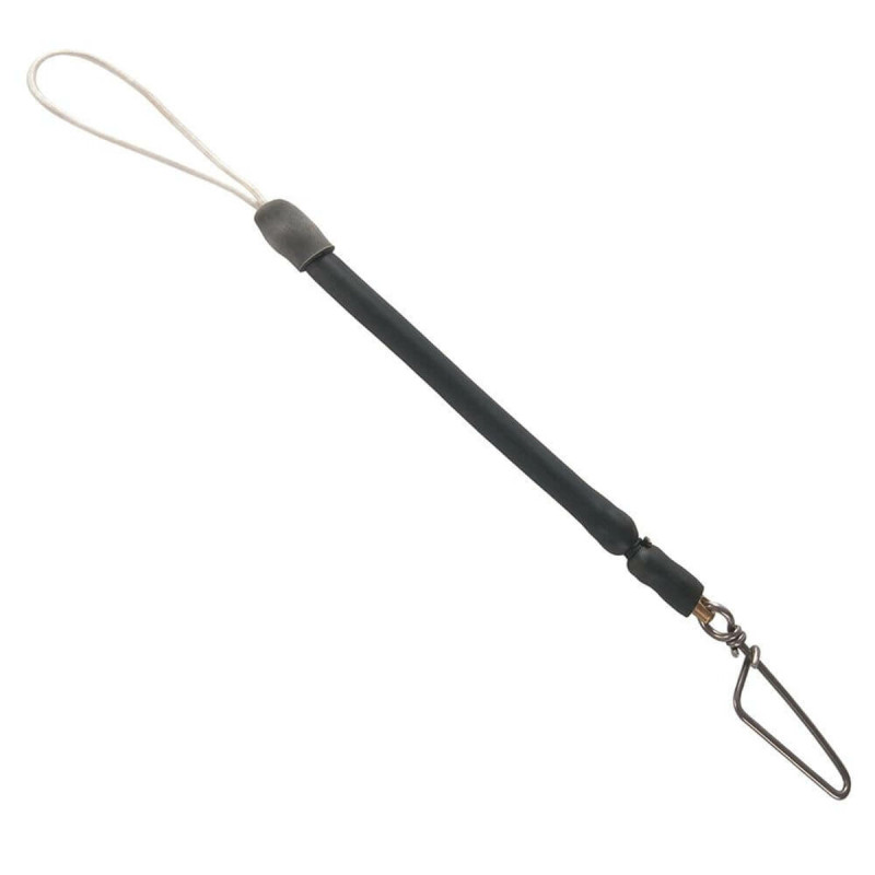 Амортизатор линя з карабіном від Mares призначений для зменшення навантаження на линь під час підводного полювання, забезпечуючи надійне кріплення та підвищуючи ефективність використання підводної рушниці.