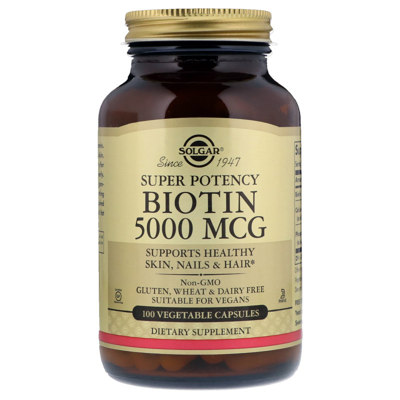 Биотин (В7) 5000 мкг, Solgar, 100 вегетарианских капсул