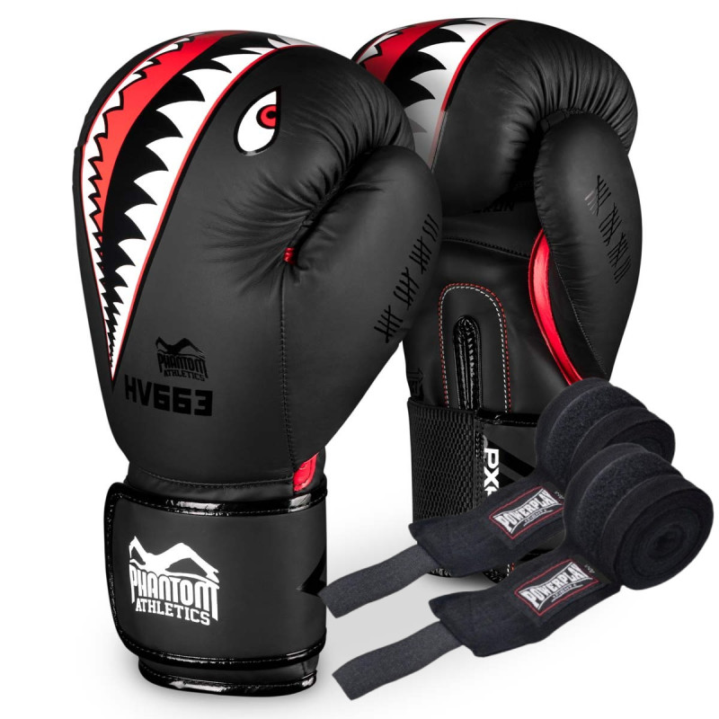Боксерські рукавиці Phantom Fight Squad Schwarz Black 14 унцій (Бинти 4м. )