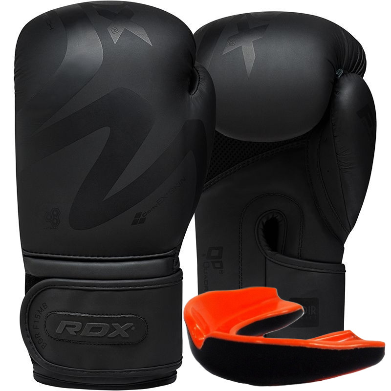 Боксерские перчатки RDX F15 Noir Matte Black (капа в комплекте), 14 унций, Искусственная кожа ConvEX Skin Combat Leather, Черный (матовый)