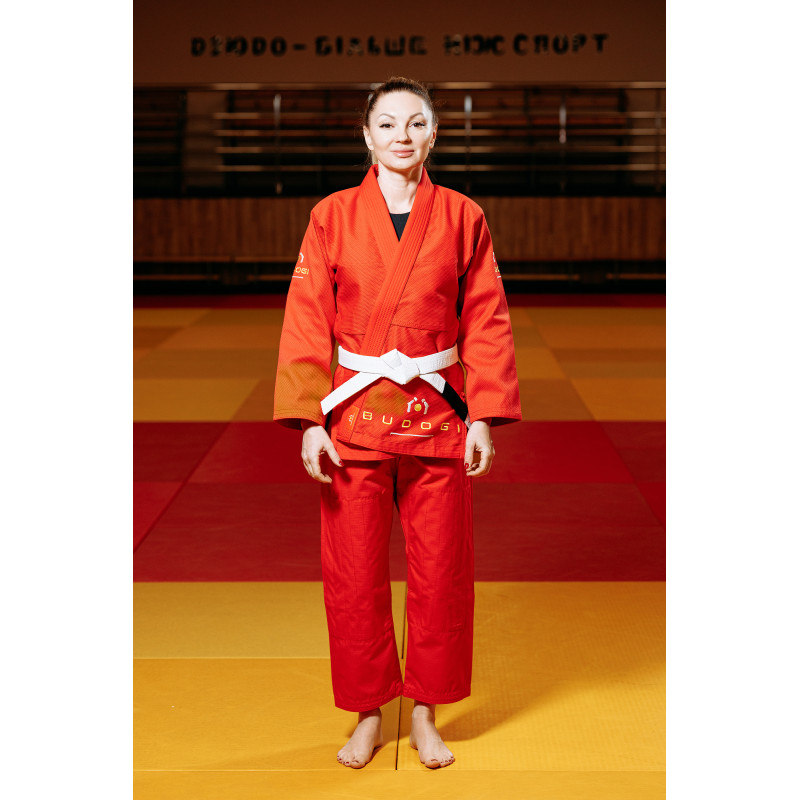 Червоне кімоно для дівчат/жінок, джиу-джитсу, TM BUDOGI, зріст 190 см, щільність 450 гр/м.кв.