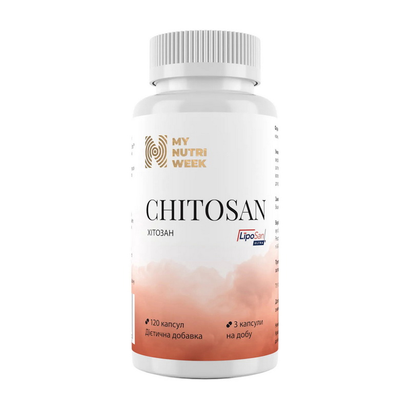 Chitosan от My Nutri Week – это пищевая добавка на основе хитозана, природного вещества, получаемого из панцирей морских ракообразных. Продукт предназначен для дополнения рациона.