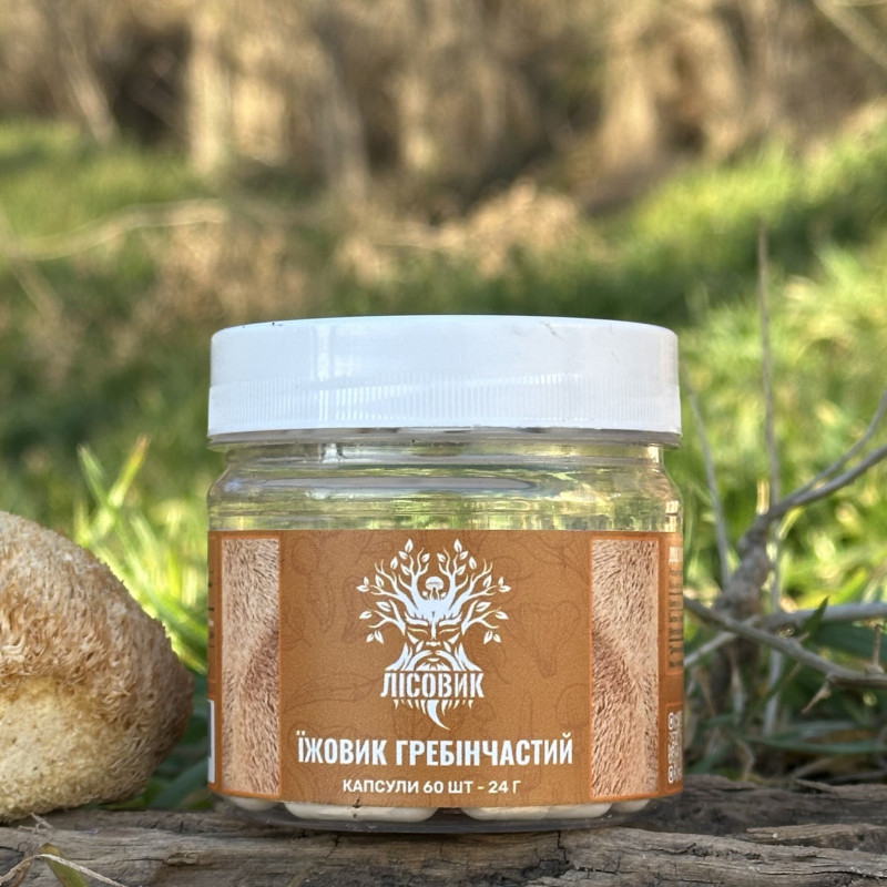 Ежовик гребенчатый в капсулах «Лесовик», 60 капсул — натуральная грибная добавка для поддержания когнитивных функций, нервной системы, иммунитета и общего восстановления организма.