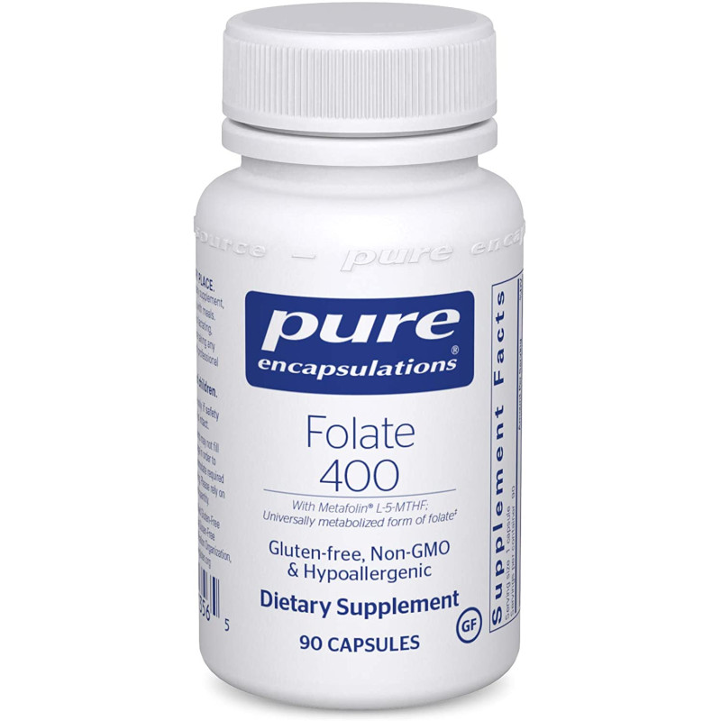 Фолат, Folate, Pure Encapsulations, с метилфолатом L-5-MTHF для поддержки здоровья сердечно-сосудистой, клеточной и нервной систем, 400 мкг, 90 капсул