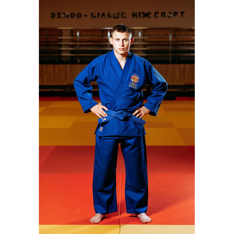 - У комплекті: куртка, штани, синій пояс та нашиті шеврони.