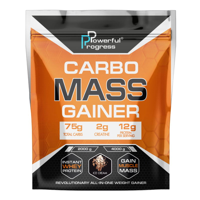 СARBO MASS GAINER – высокоуглеводный гейнер от бренда POWERFUL PROGRESS. Уникальный высокоэффективный гейнер с высоким содержанием углеводов, достаточным содержанием белка, креатина и комплекса аминокислот.
